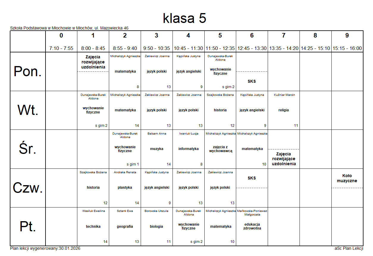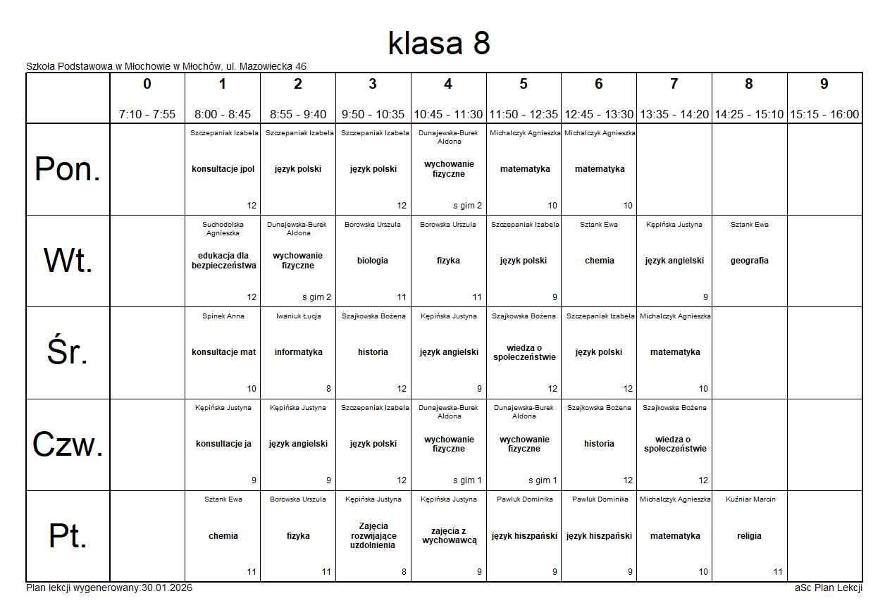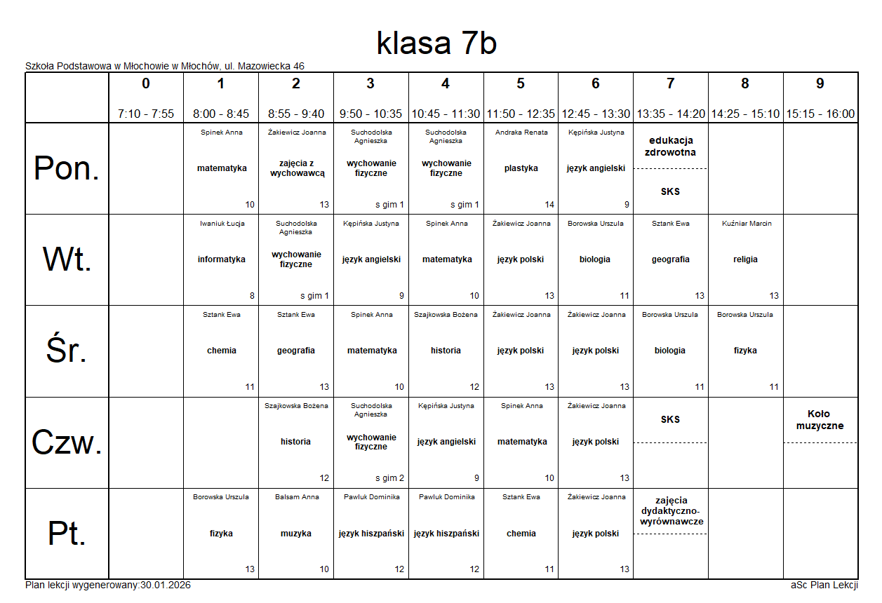 Plany lekcji na rok szkolny 2025/2026.Plany lekcji mogą ulec zmianie.