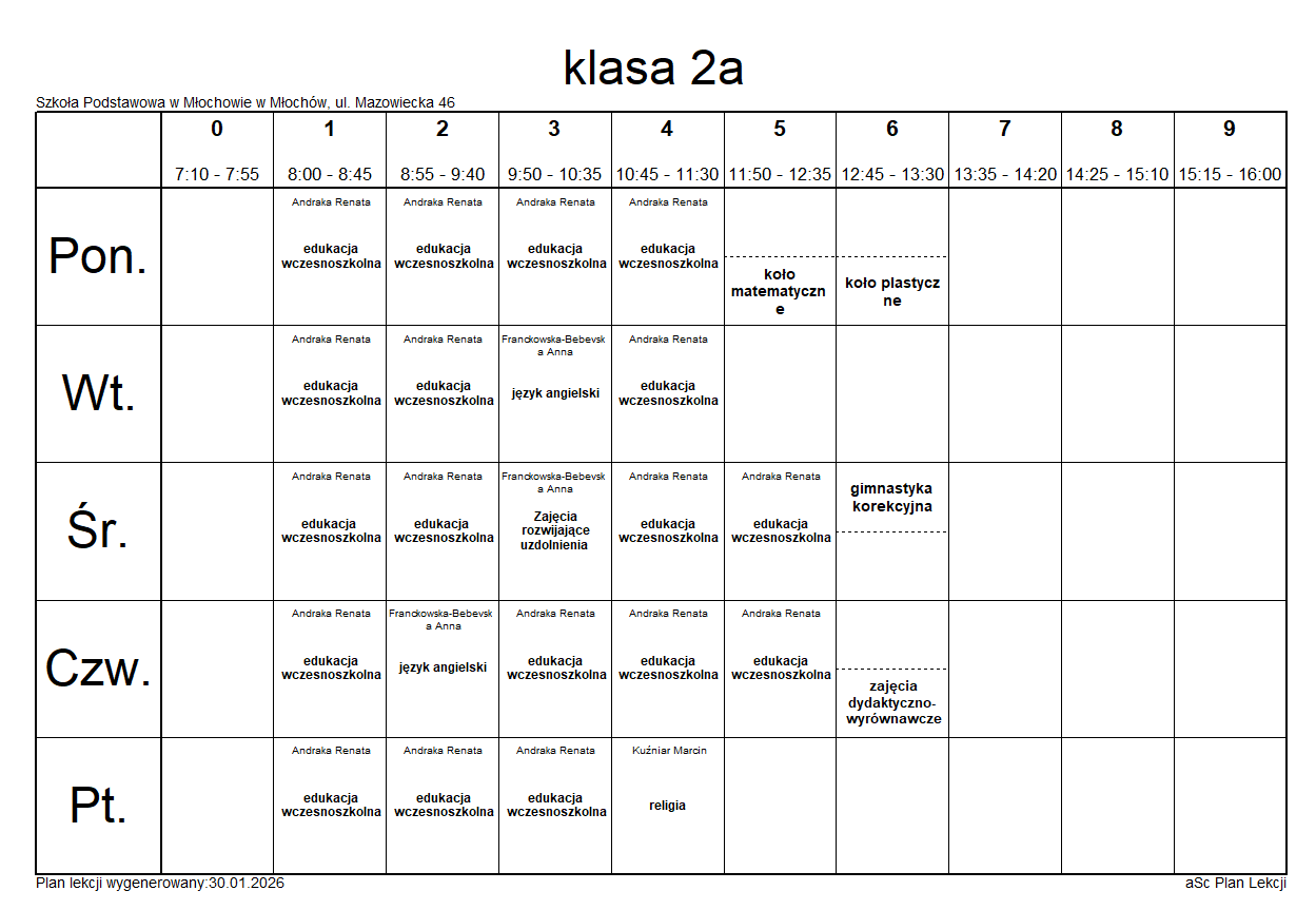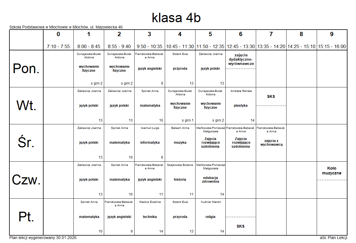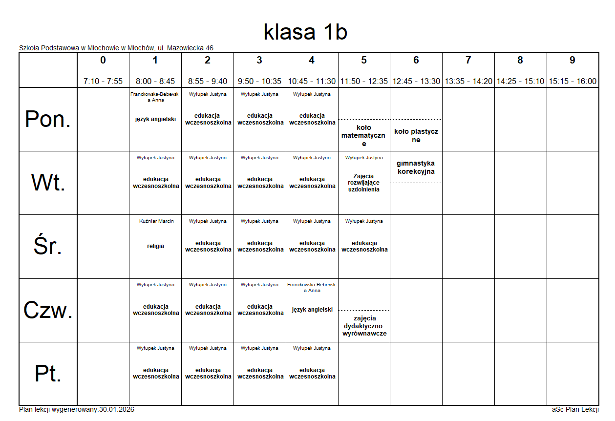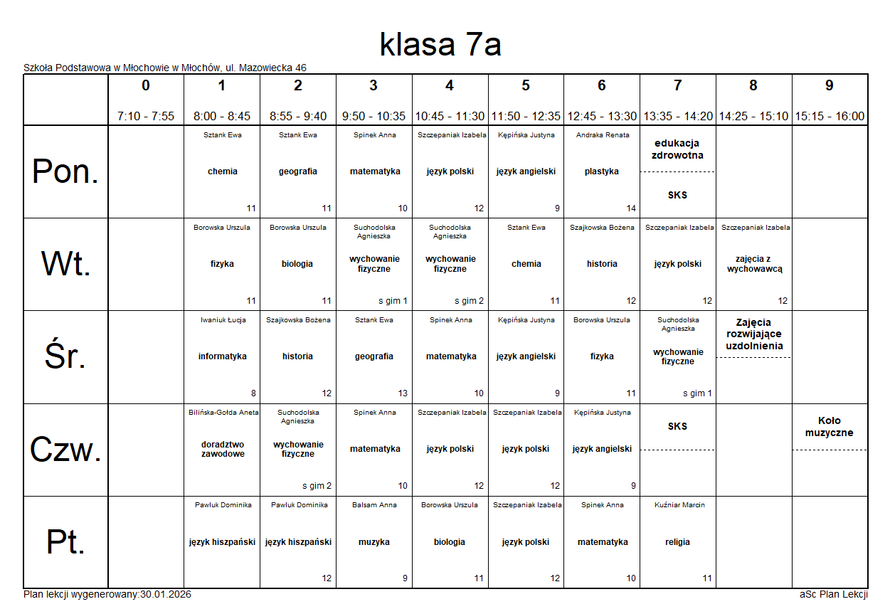 Plany lekcji na rok szkolny 2025/2026.Plany lekcji mogą ulec zmianie.